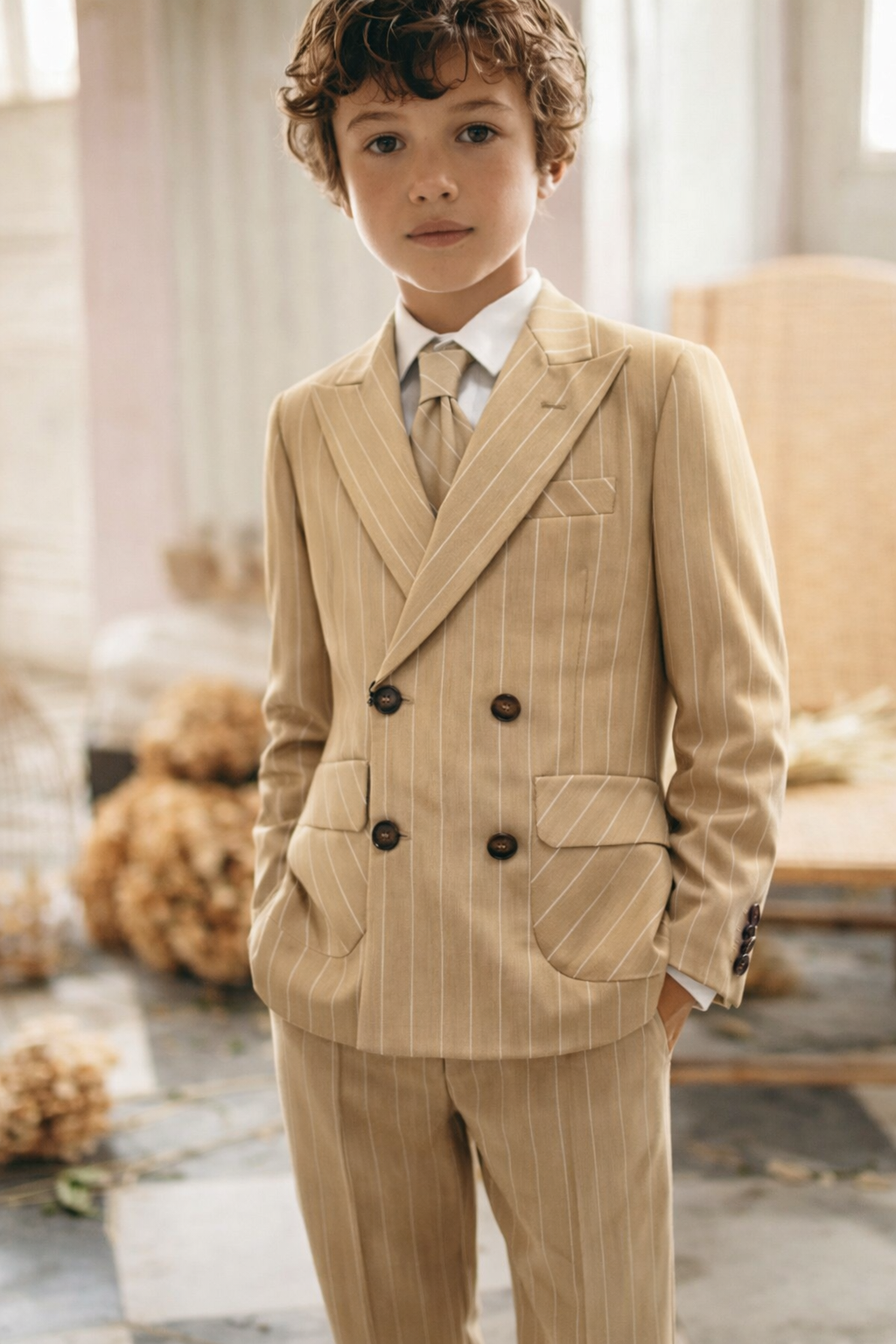 Completo cerimonia bimbo gessato SAND disponibile dalla 8 alla 18 anni
