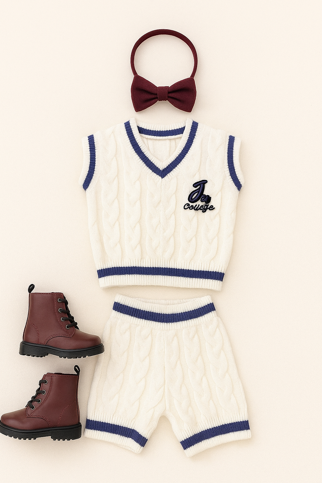 Completo college, gilet e pantaloncino, disponibile dalla 9 mesi alla 7 anni