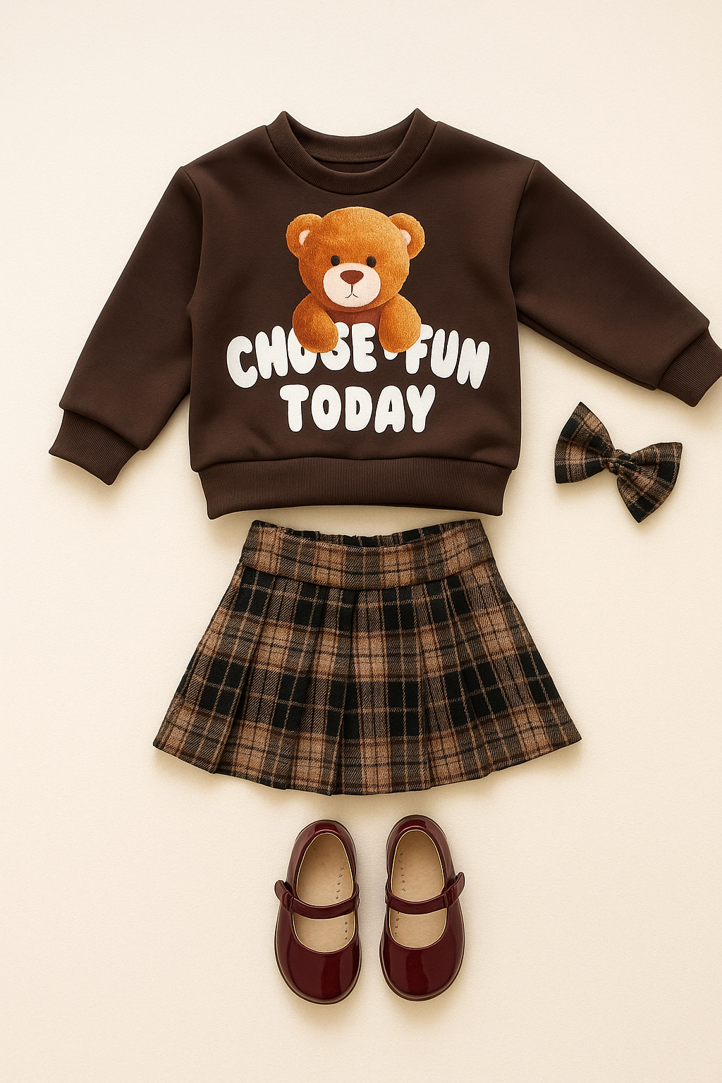 Completo compreso di fermaglio capelli OURS EN VICHY disponibile dalla 4 alla 14 anni