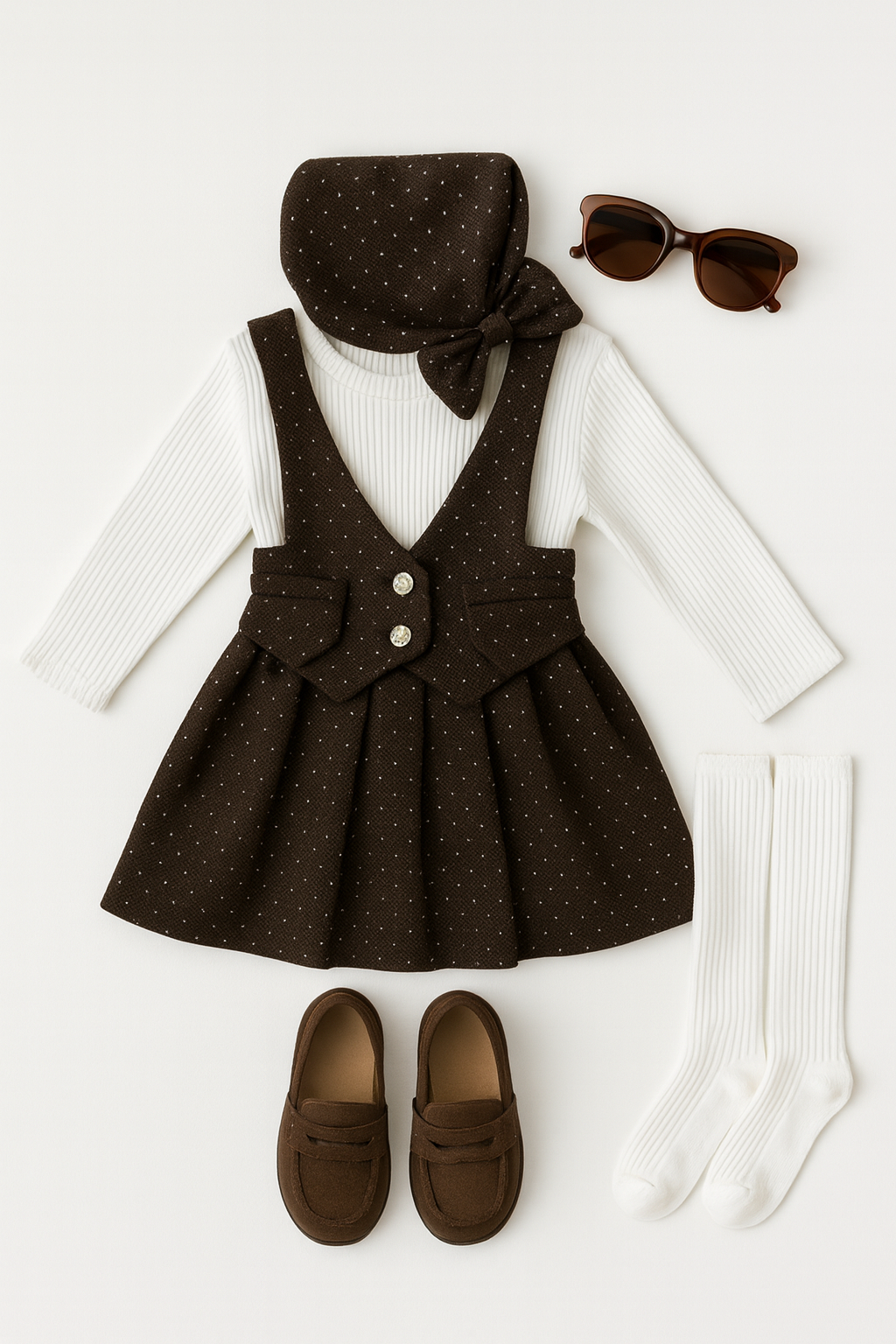Completo con il basco neonata GLITTER KISS marrone disponibile dalla 12 alla 36 mesi