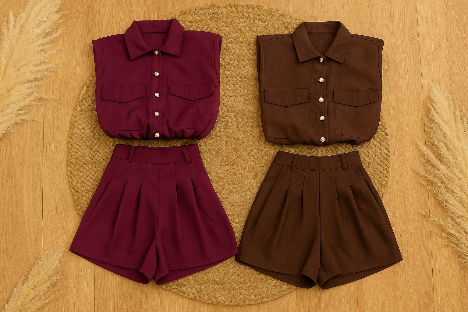Completo due pezzi Petit Pochon disponibile in marrone e vignaccio