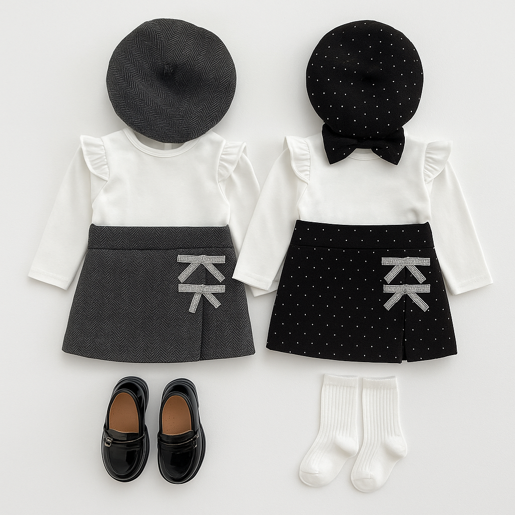 Completo neonata con basco DIAMOND FLAKE disponibile in marrone e grigio dalla 12 alla 36 mesi