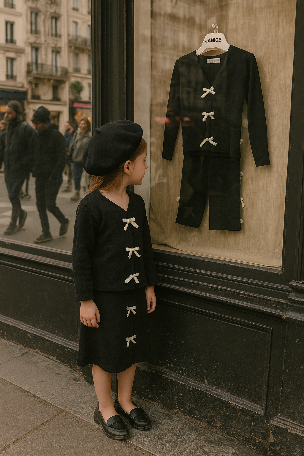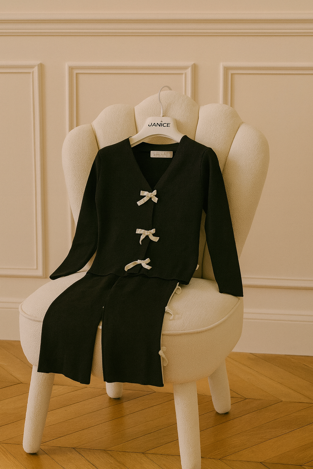 Completo bimba, cardigan + pantalone palazzo con fiocchi disponibile dalla 4 alla 14 anni