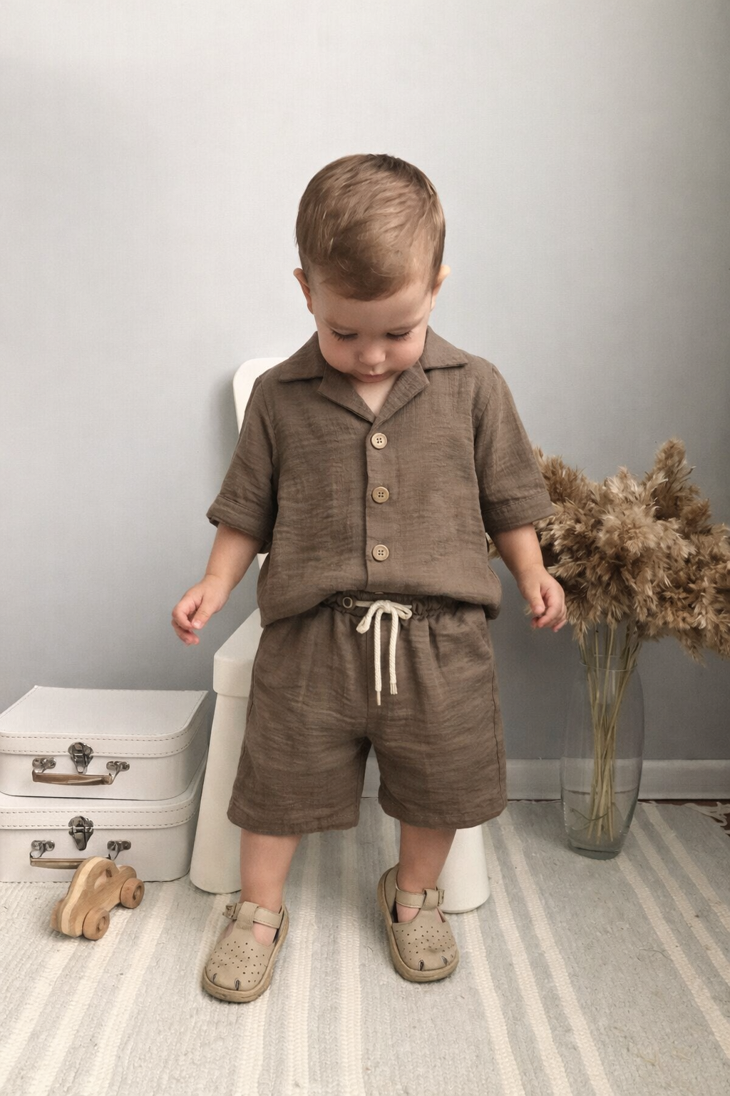 Coordinato Ibiza firmato NEVER TOO , 2 pz, disponibile dalla 9 mesi alla 7 anni, nella colorazione fango