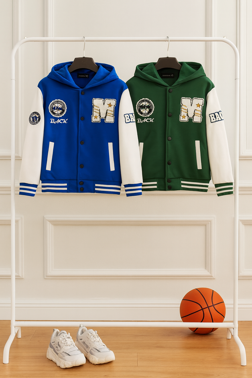 Felpa College disponibile in verde e blu dalla 10 alla 16 anni