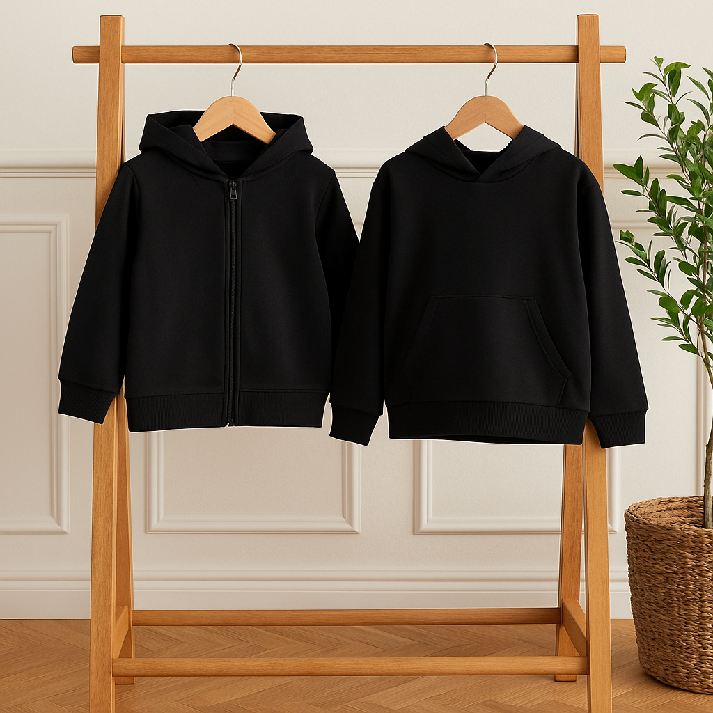 Felpa nera Basic con cerniera disponibile dalla 4 alla 14 anni