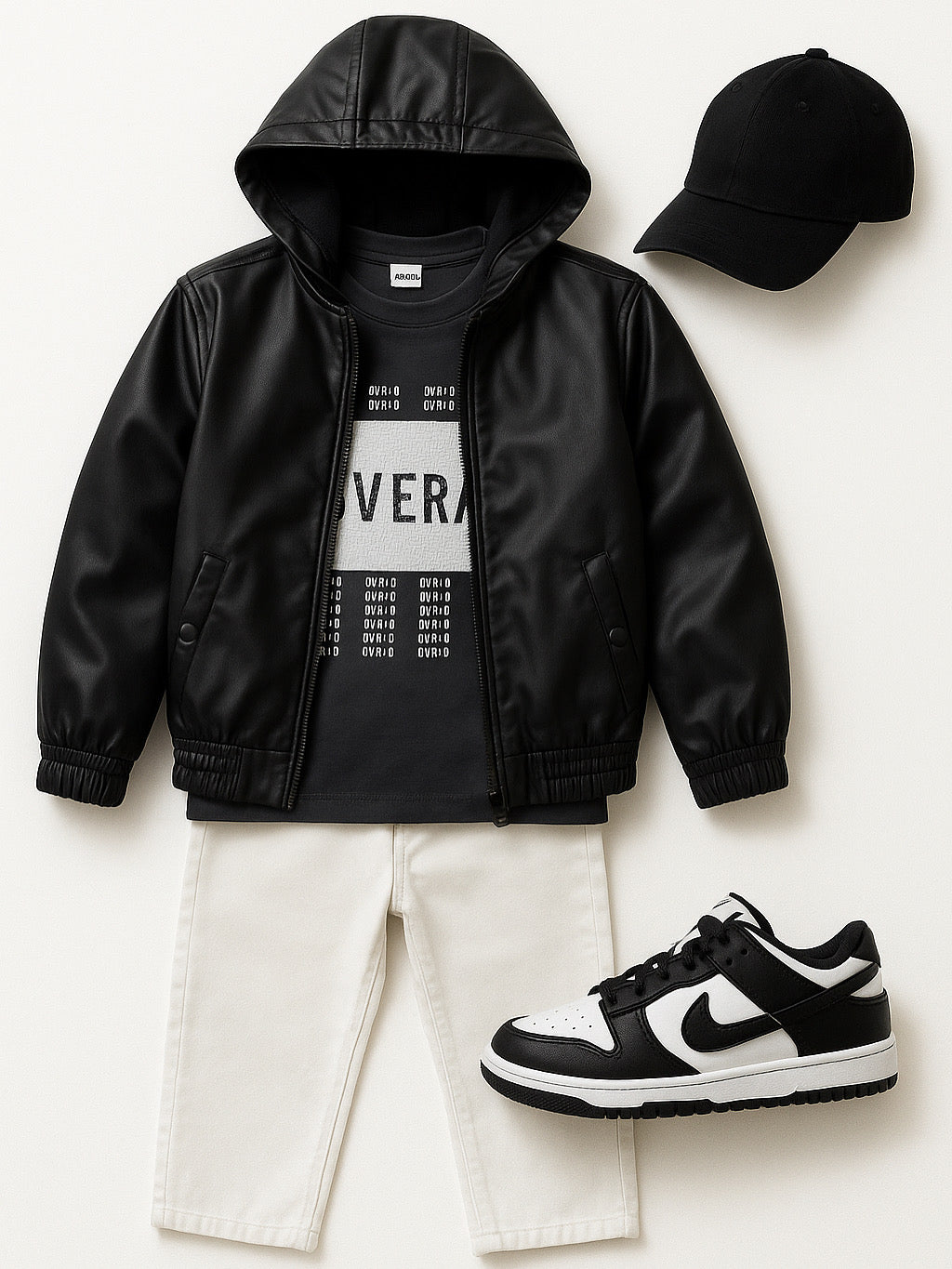 Felpa nera con cappuccio in ecopelle