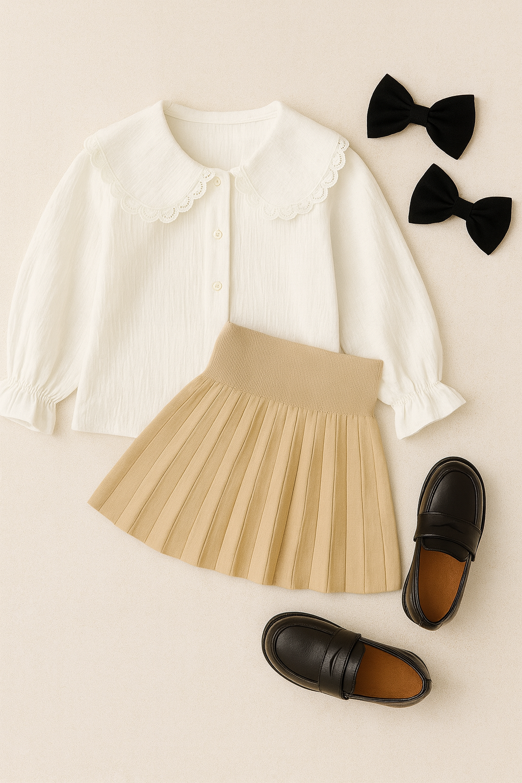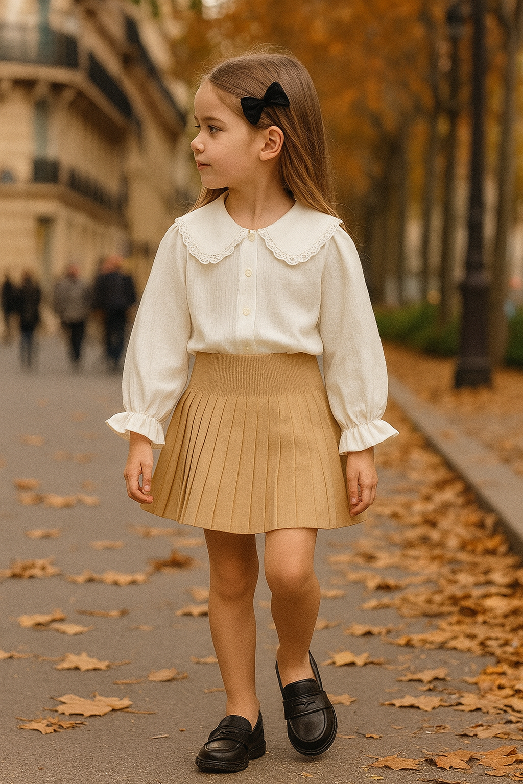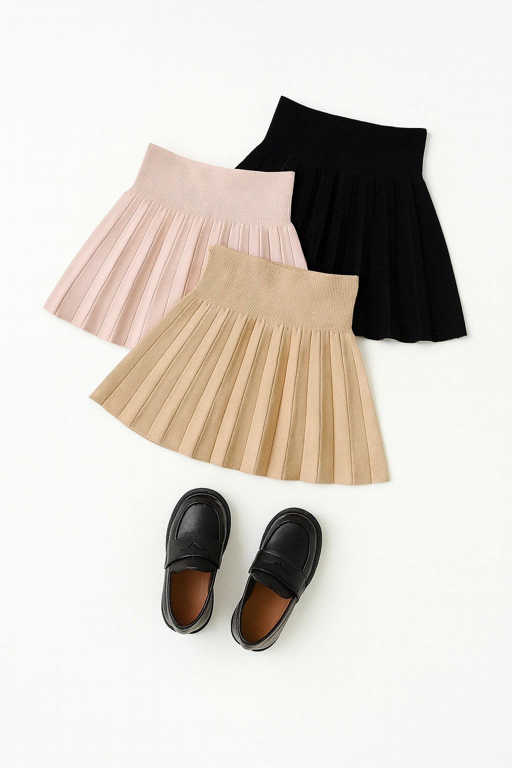 Gonnellina plissettata neonata DIVINA disponibile in beige e nero dalla 12 alla 36 mesi