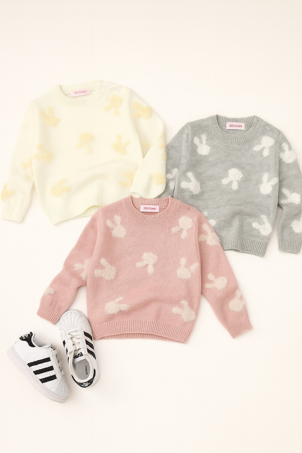 Maglione neonata, disponibile in rosa, panna e grigio, dalla 12 alla 36 mesi