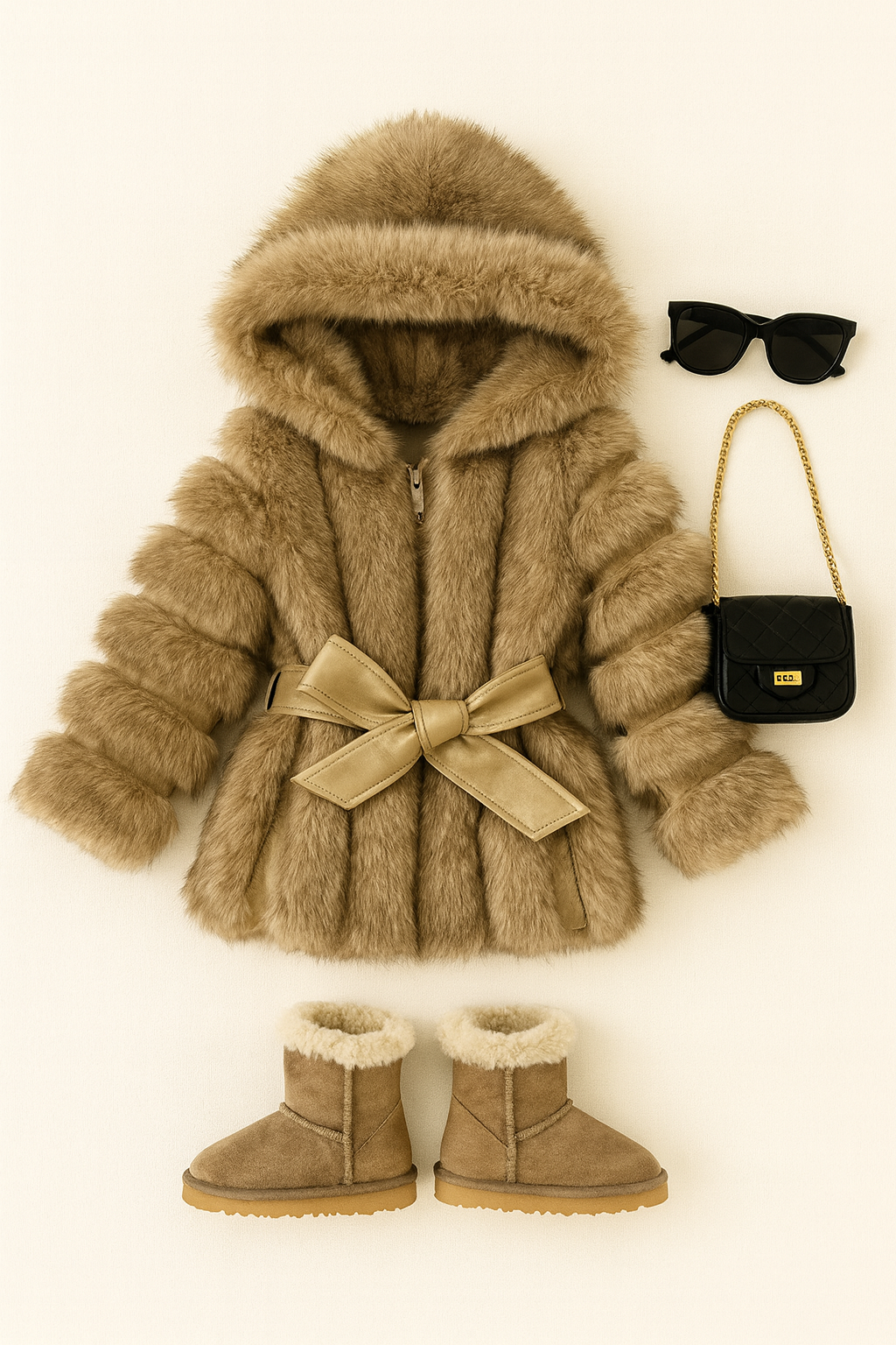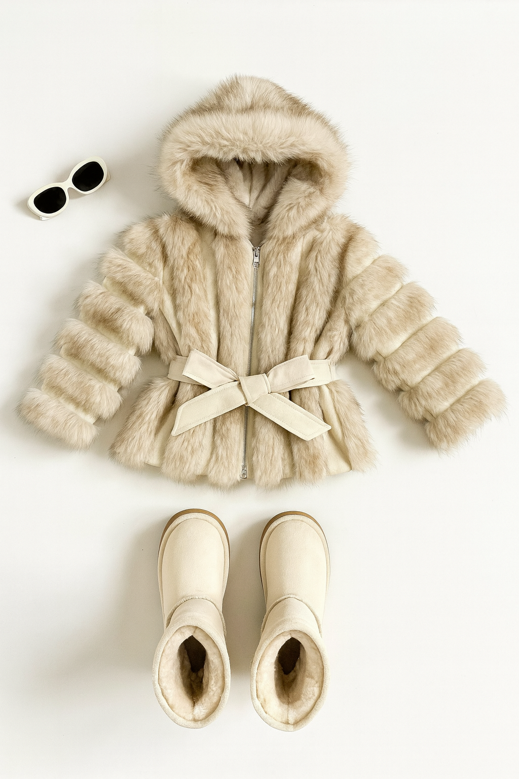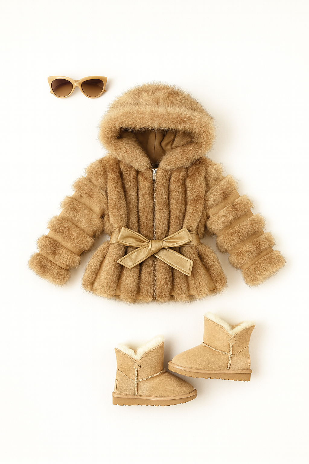 Pelliccia Lune D’Hiver disponibile in beige chiaro e beige scuro dalla 4 alla 14 anni