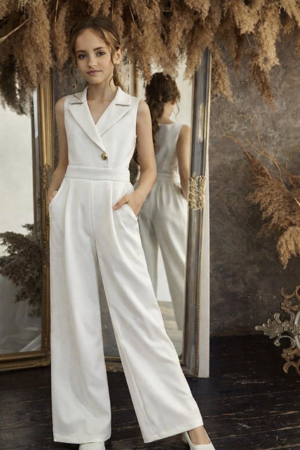 Tuta intera firmata Janice disponibile dalla 8 alla 18 anni nelle colorazioni bianco e glicine