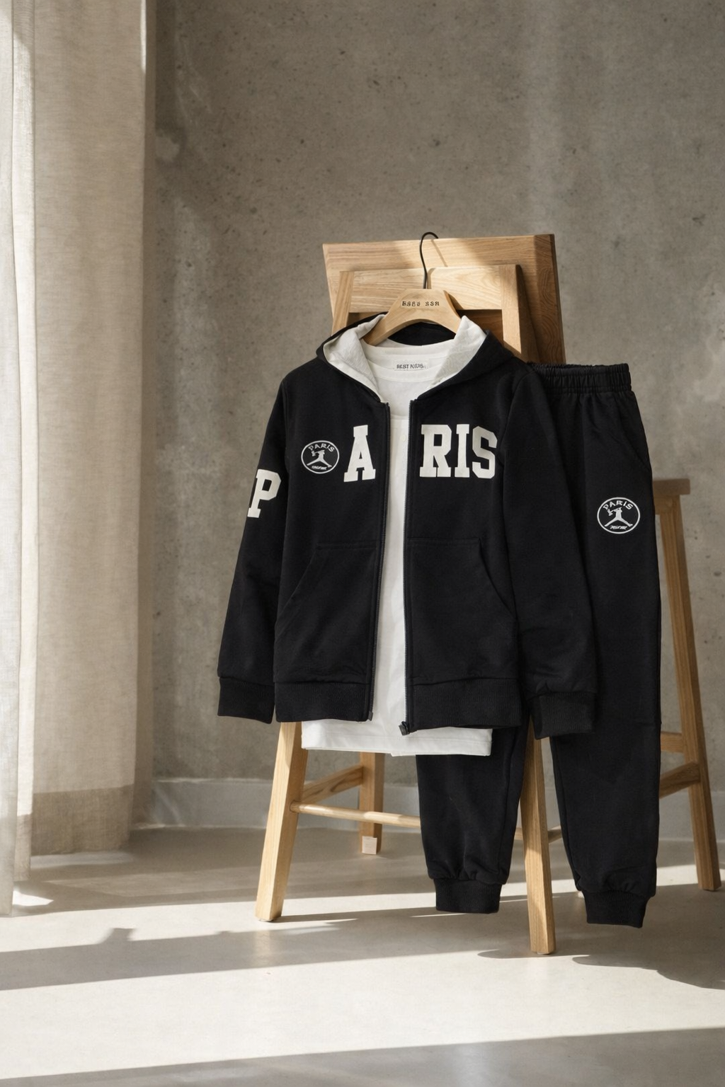 Tuta Paris bimbo, 3 pz, disponibile dalla 4 alla 12 anni, colorazione nero + t-shirt bianca